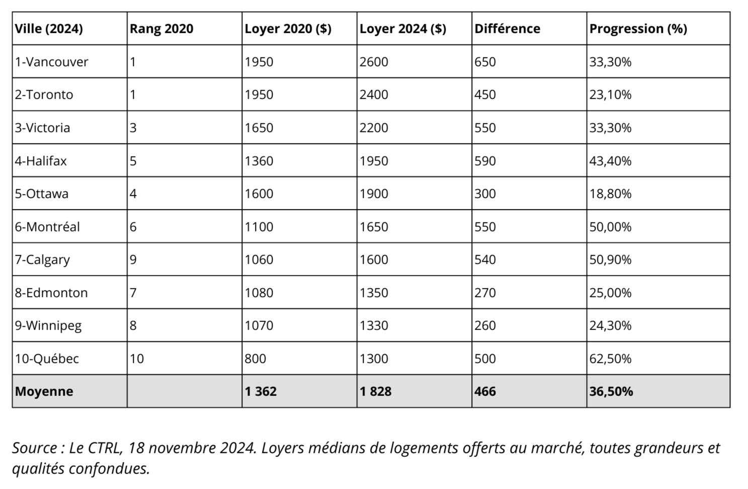 Analyse des loyers au Québec par rapport aux autres métropoles canadiennes